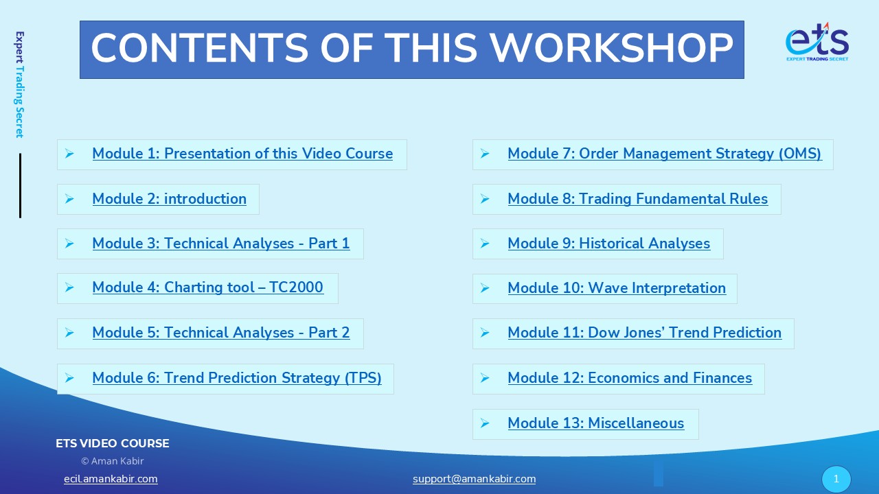 AMONG OTHERS, THE WORKSHOP COVERS THE TWO MAIN STRATEGIES OF THE ETS BOOK AND VIDEO COURSE: TREND PREDICTION STRATEGY (TPS) AND ORDER MANAGEMENT STRATEGY (OMS).
